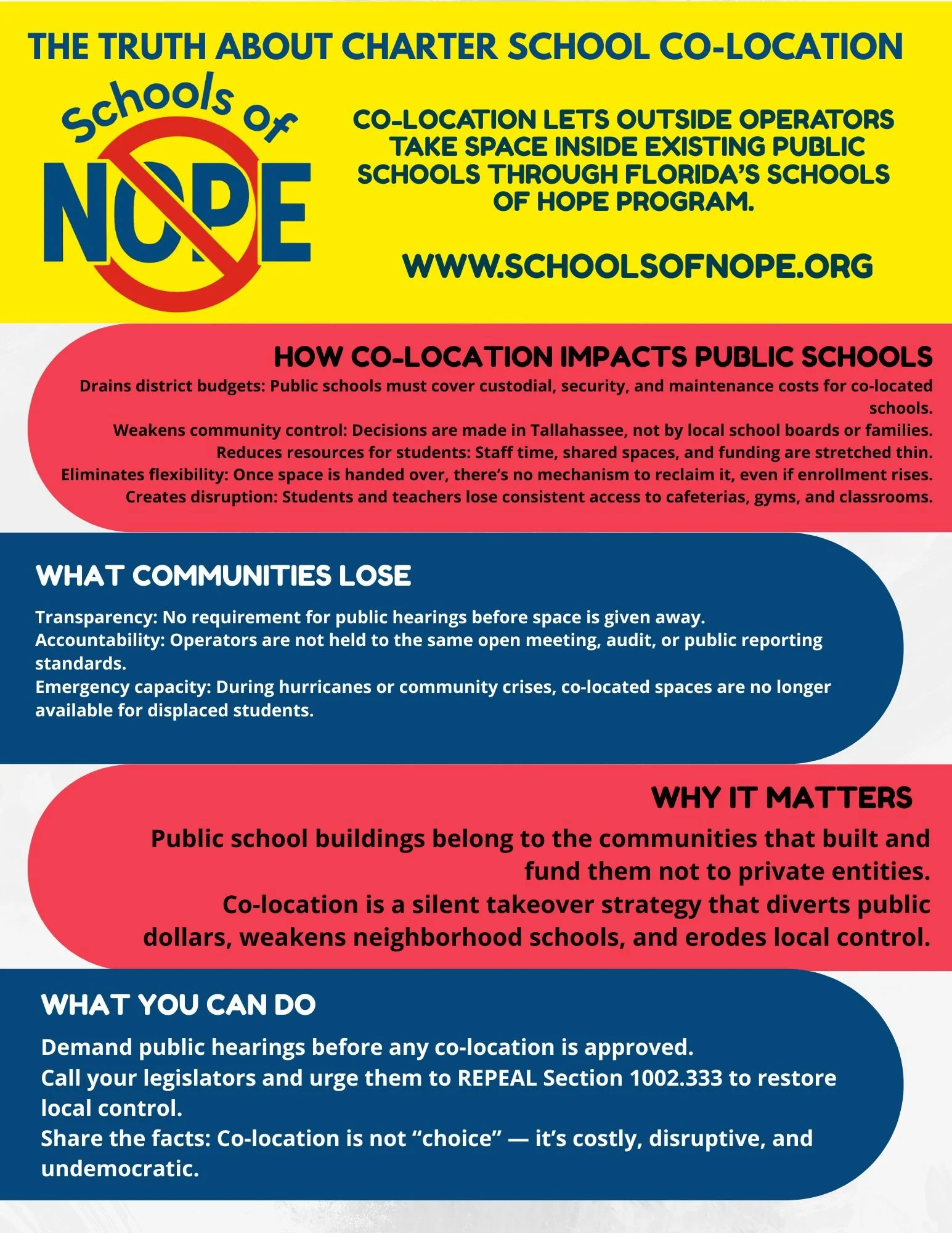 Download this resource to share with your friends and neighbors. Florida students deserve better, and by sharing this information and contacting legislators, we can ensure all students have access to a brighter future.